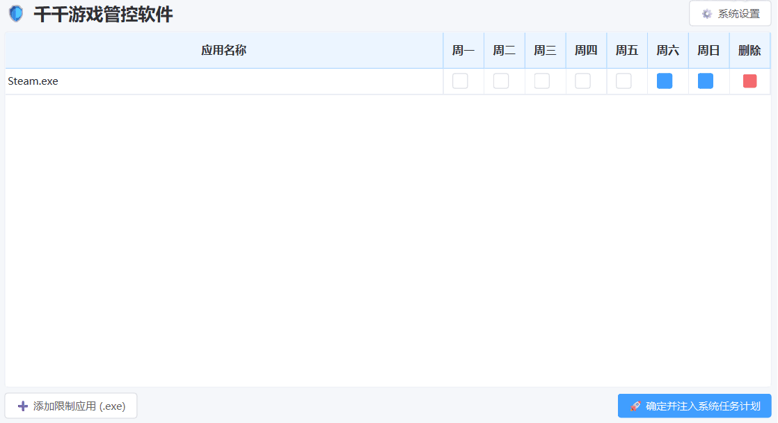 一款可以让你自律,让家长管控孩子上网玩电脑游戏的软件,可以设置电脑任何软件周几才能打开玩,劳逸结合。