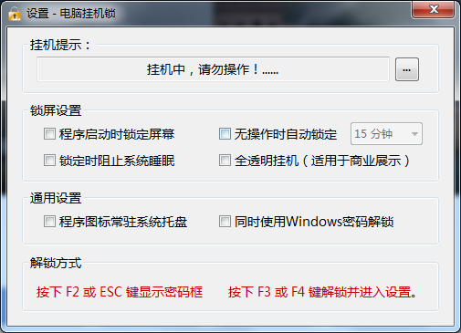 1、主要用于防止他人随意操作目标电脑,支持透明和半透明锁屏效果,