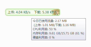显示当前实现网络传输速率、CPU和内存占用率